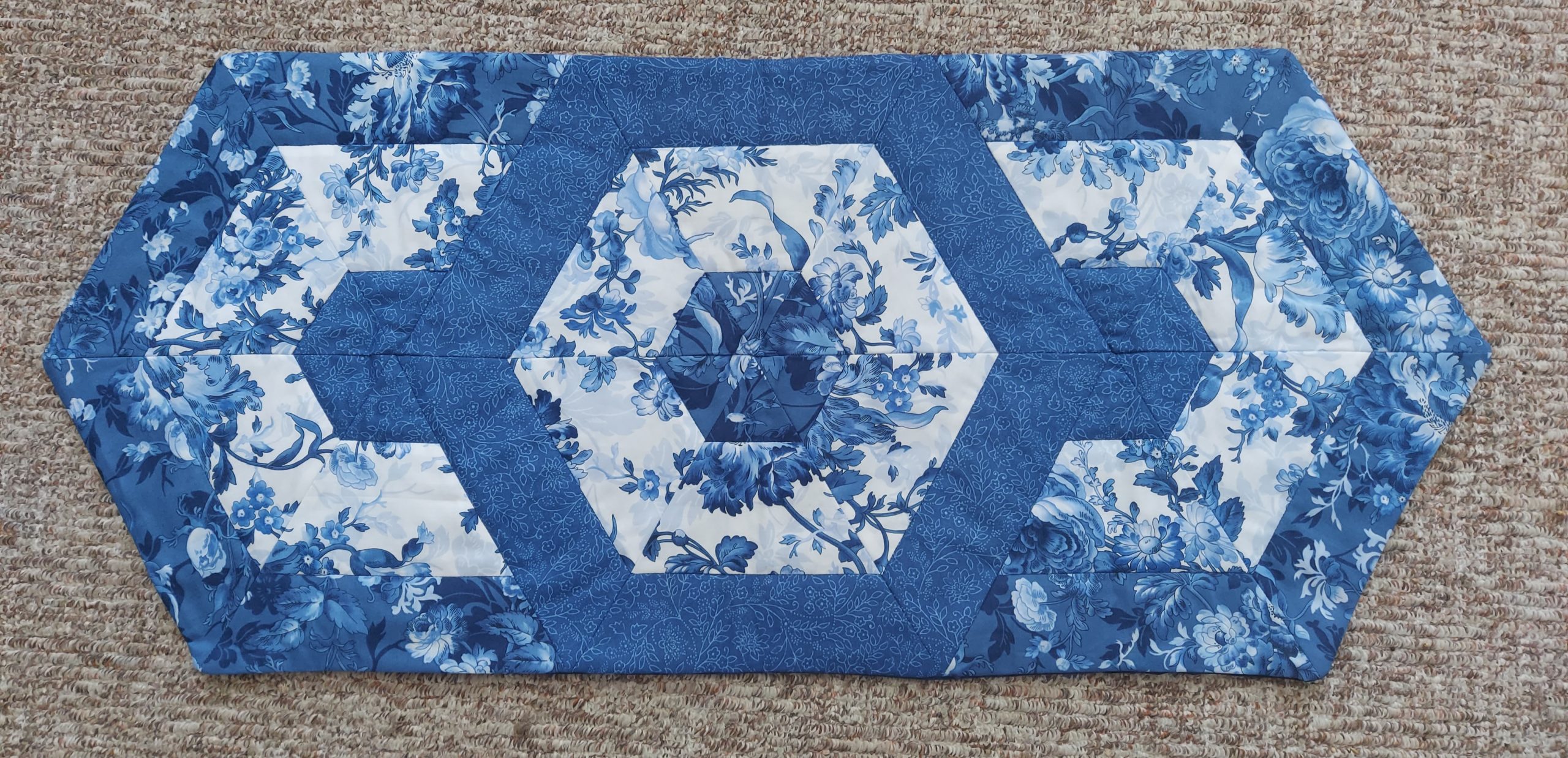 Die „Blaue Schönheit“ ist im neuen Patchwork Magazin. Ein kleiner Tischläufer aus der Stoffserie „Blue Belle“.