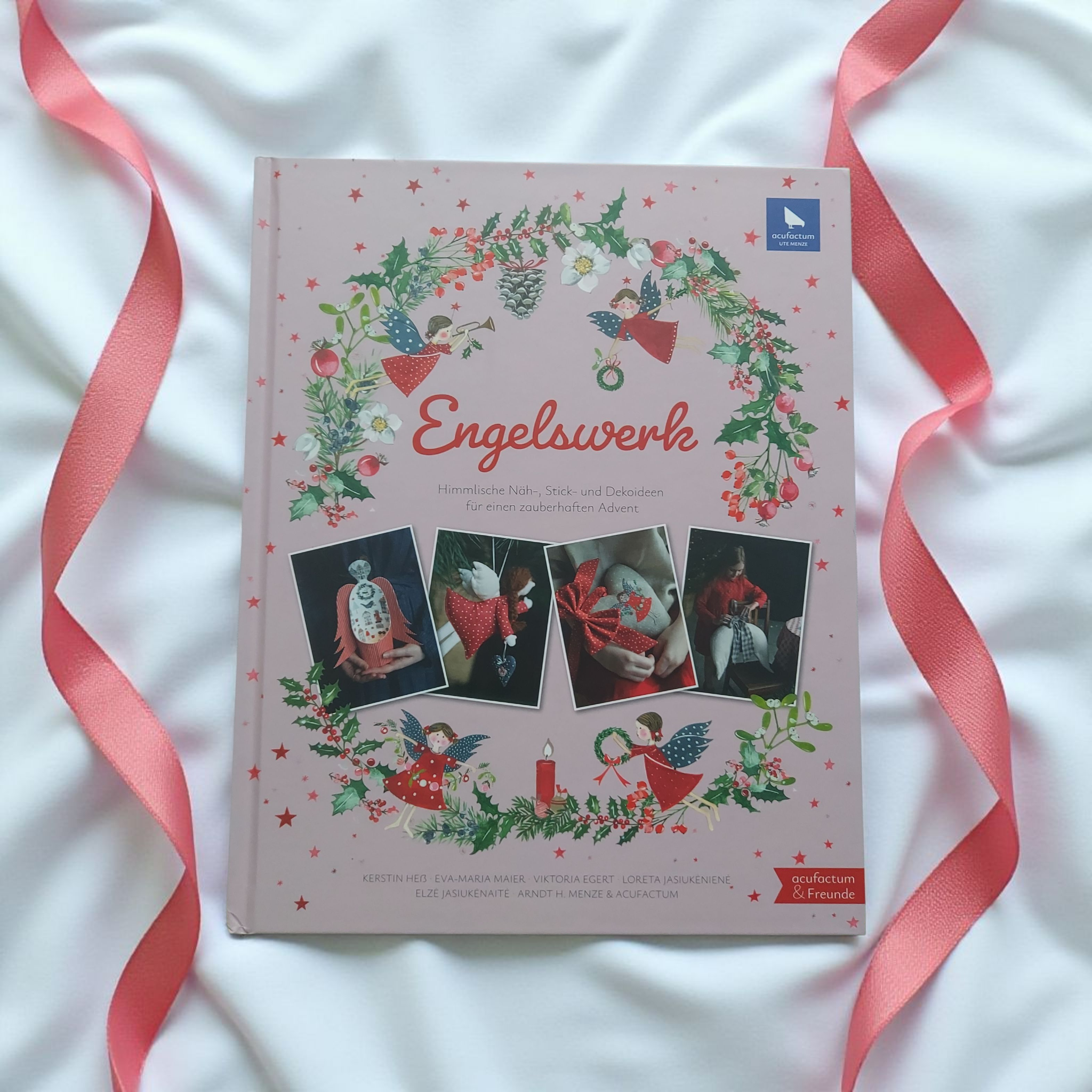 Gestern habe ich Schleifen genäht. Die große Schleife ist 70 cm lang, die kleine 50 cm. Aus dem Buch "Engelswerk" von acufactum.