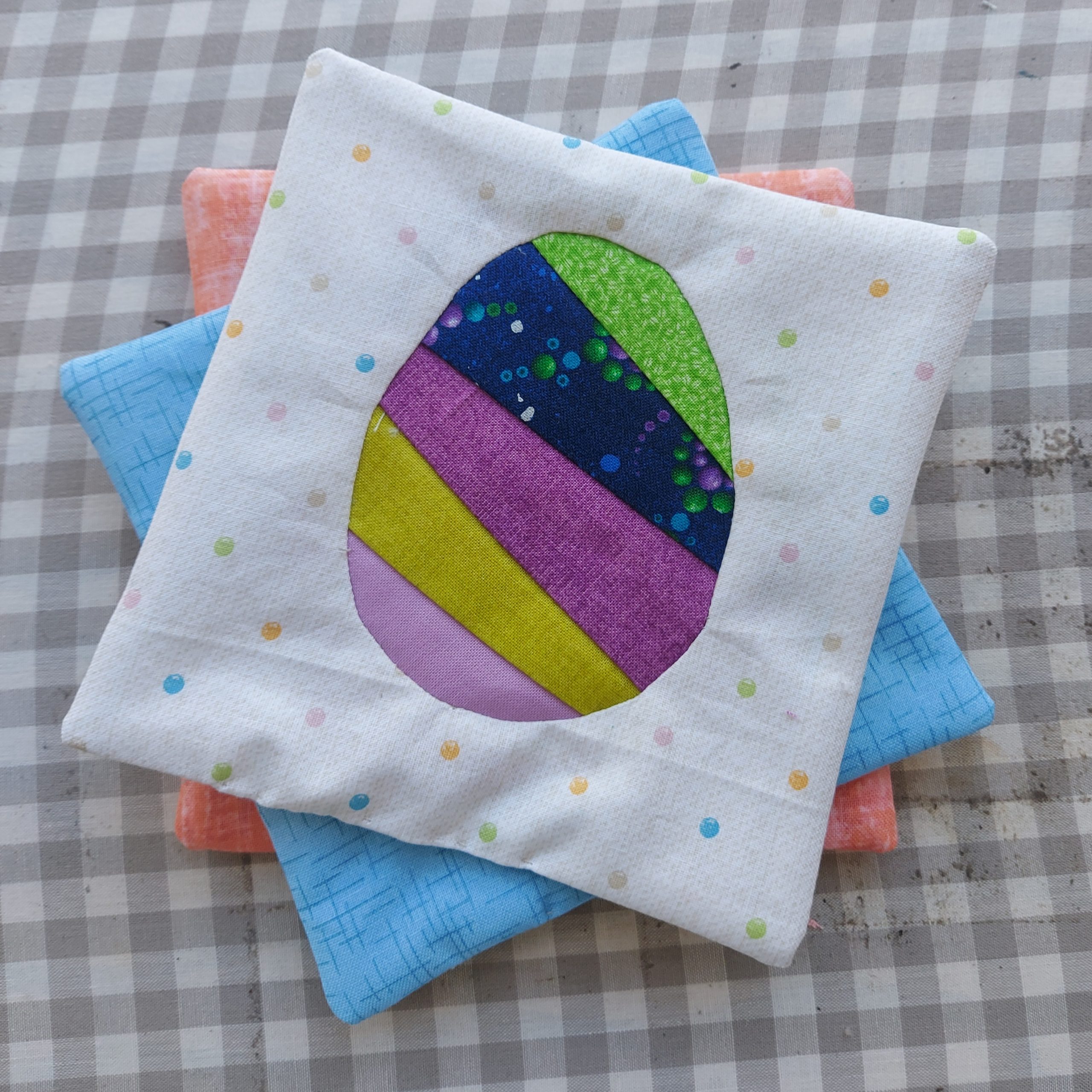 Besonders in den Kinderkursen ist das Nähen von Kreisen – sprich Ostereiern – mit Freezer Paper wieder voll im Trend. Die Mug Rugs sind aber auch schön!