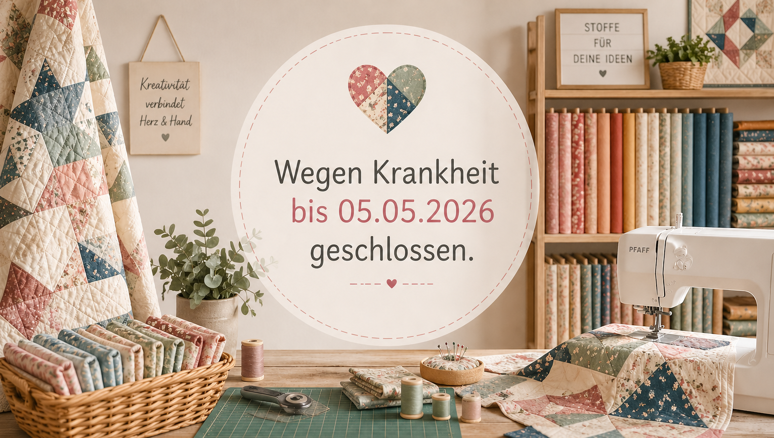 Leider kann ich bis 05.05.2026 nicht in meinem Geschäft sein. Danach bin ich gerne wieder für euch da!